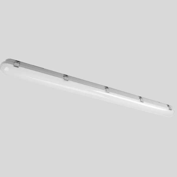 Energiezuinig LED-armatuur, stof- en waterdicht, ideaal voor garages, werkplaatsen en industriële omgevingen.